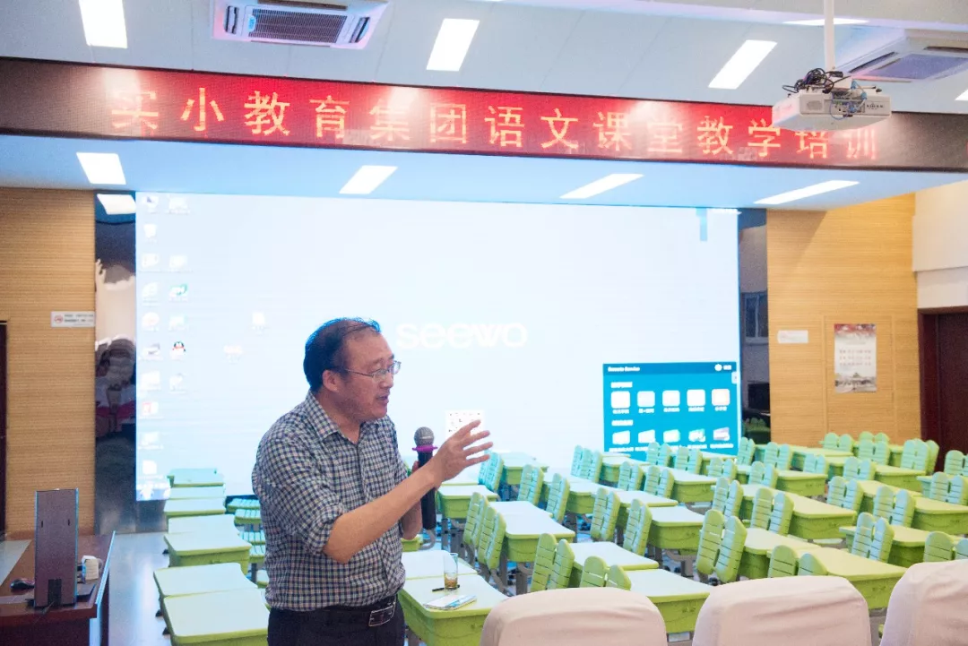 教学展示结束后,通州区学科研训部瞿德泉副主任首先对两位年轻的语文老师的课堂教学给予肯定,然后结合两堂课的教学,就统编教材的教学为集团的老师们指明了方向。瞿主任的讲座围绕“心中有人,眼中有文,目标意识,踊跃展示,合作学习,课外阅读”等六个方面展开,旨在让老师们明确,每一堂课都应该培养学生的核心素养,要真正将立德树人落到实处。