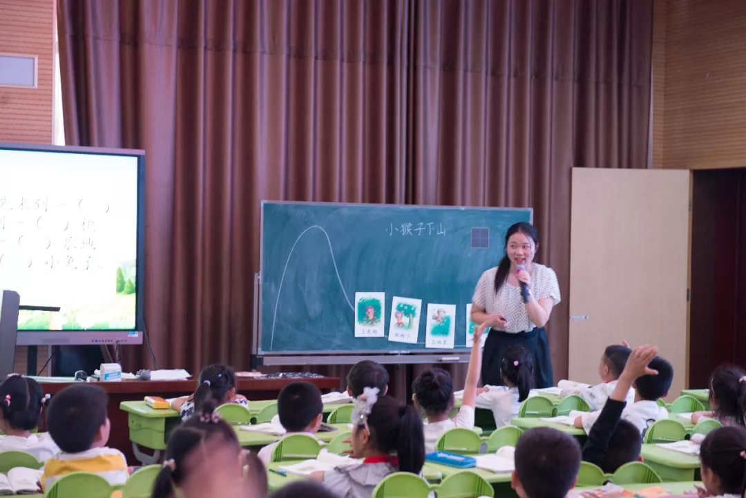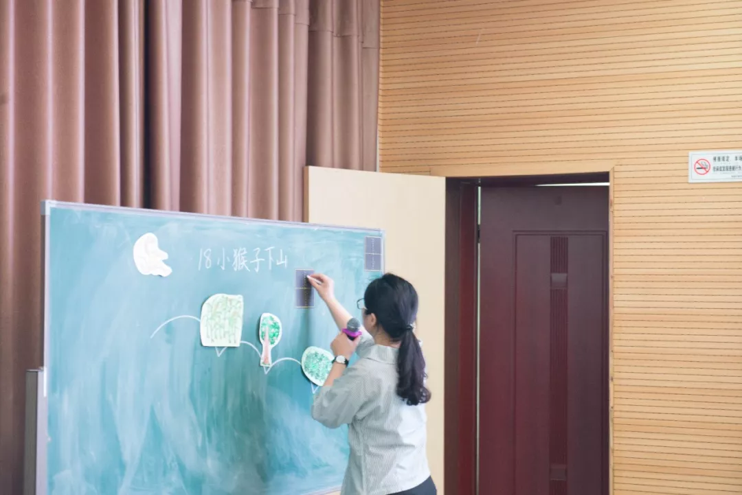 这次执教研讨课的是两名踏上工作岗位未满一年的青年老师,她们每人一个课时,共同执教了统编教材一年级下册《小猴子下山》。教学中,她们都着眼于“看插图,讲故事”的目标,各显身手,虽然课堂仍显青涩,但是却充满活力。