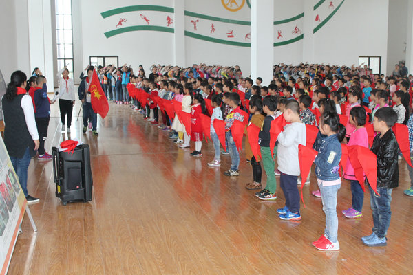 活动中,30名老少先队员代表和150余名即将入队的一年级学生在雄壮的乐曲声中举行了庄严的入队仪式。