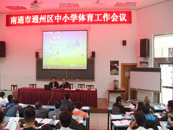首先,通州高级中学顾豪杰老师对国家学生体质健康标准进行了详细解读,对国测统计表中出现在的数据计算问题进行了详细分析;接着,通州区金沙小学李建峰老师对学校体育工作报表的填写进行了具体的指导与纠偏,着重强调了在填表过程中要注意生师比的关系;基教科邱军老师对即将举办的南通市校园足球文化节活动进行了详尽的布置,要求大家按照文件精神认真做好各项工作,既要亲力亲为、又要群策群力,以求真务实、细致缜密的态度确保本次任务完满完成。最后,虞老师就国家学生体质健康标准的贯彻实施提出了“建立领导小组、制定实施方案、建立台账工作、及时组织测试上报、完善达标名册”等要求,对即将举行的区阳光运动会提出了安全、公正的工作要求。会议还进一步明确了今后一阶段时间中小学体育中心教研组活动的重点。